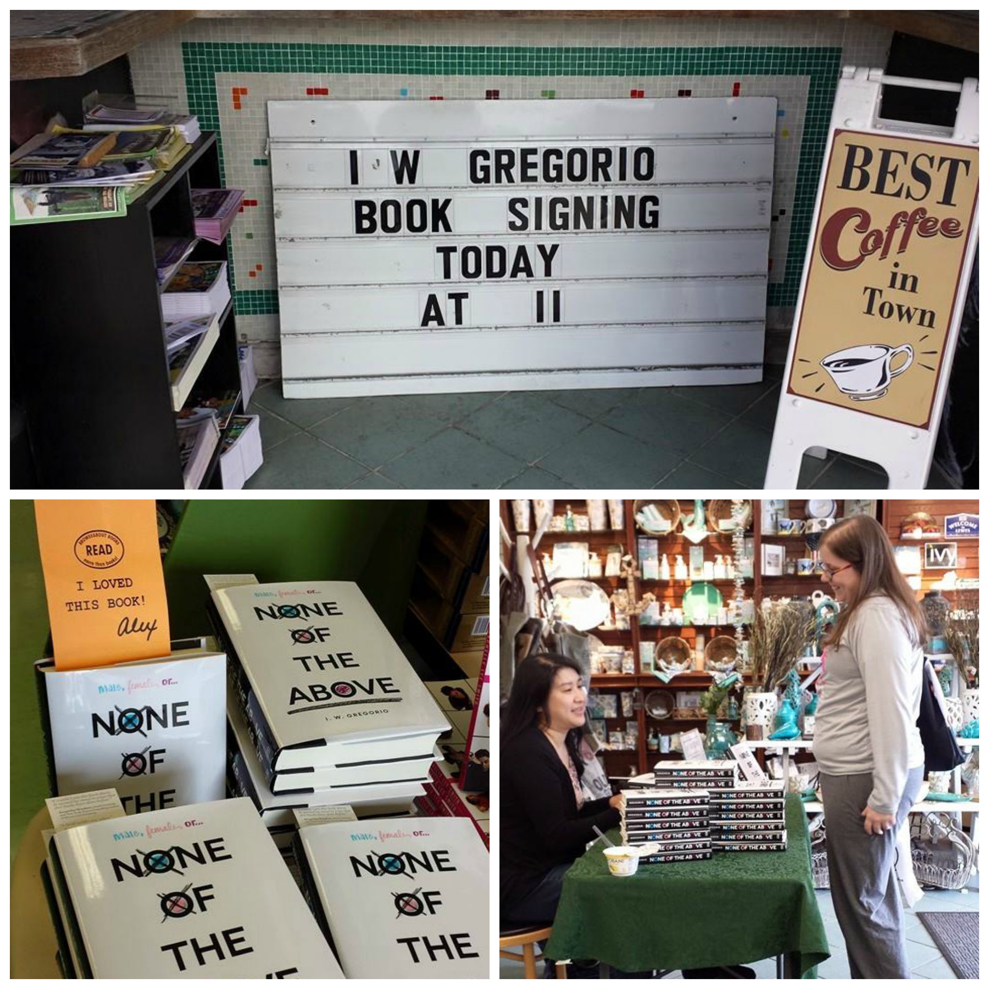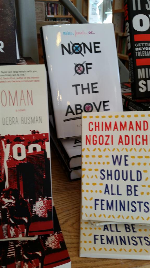 Even before the “official” launch date, Erin Entrada Kelly spotted None of the Above in the wild at Giovanni’s Room in Philadelphia. Yes, I freaked out when I saw the authors keeping it company on display…