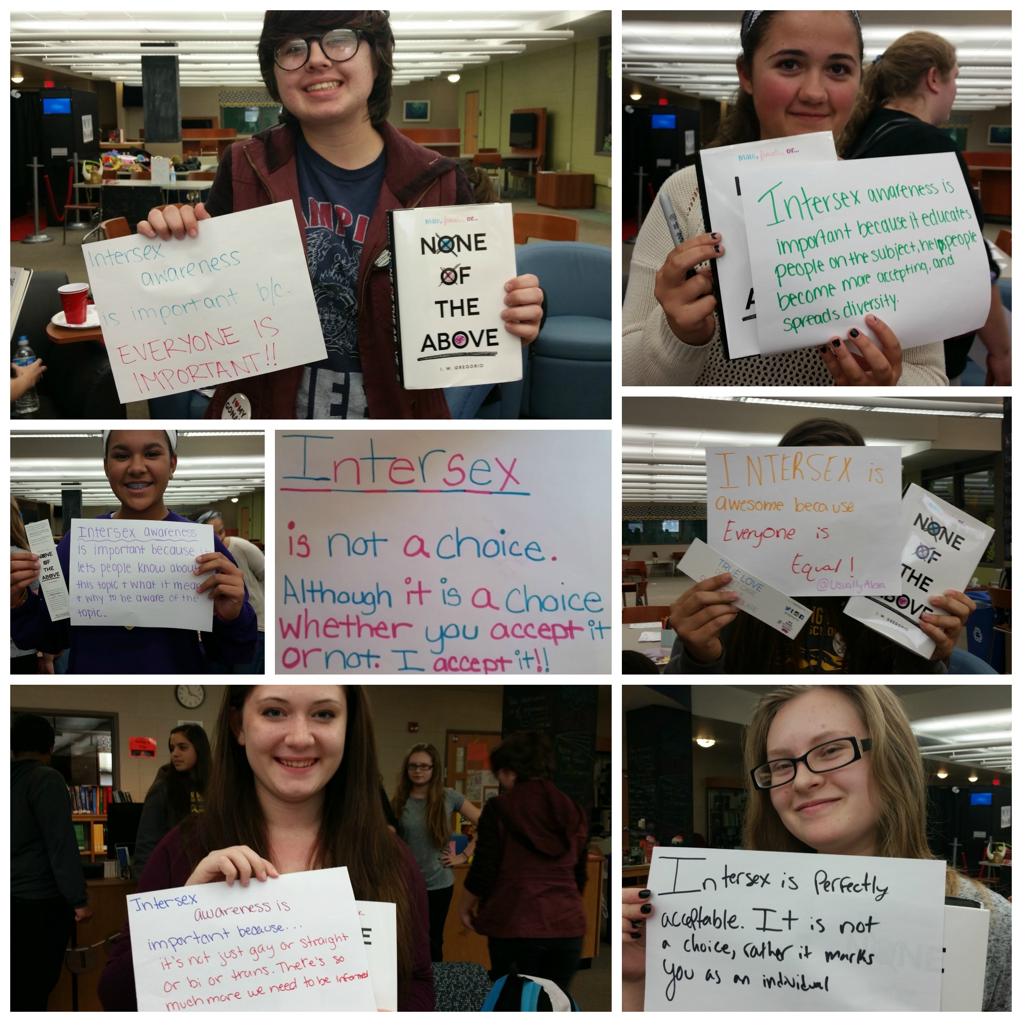 I’m not going to lie – the past couple of weeks have been pretty sweet, none sweeter than Friday when I had an amazing visit with the Downingtown High School West Book Club. In addition to being generally sweet and awesome and enthusiastic, they asked some terrific, nuanced questions and helped me make some wonderful cue cards for the #intersex stories campaign for Intersex Awareness Day, which is tomorrow 10/26. If you’ve never seen proof of how open-minded and amazing teens can be, look no further: