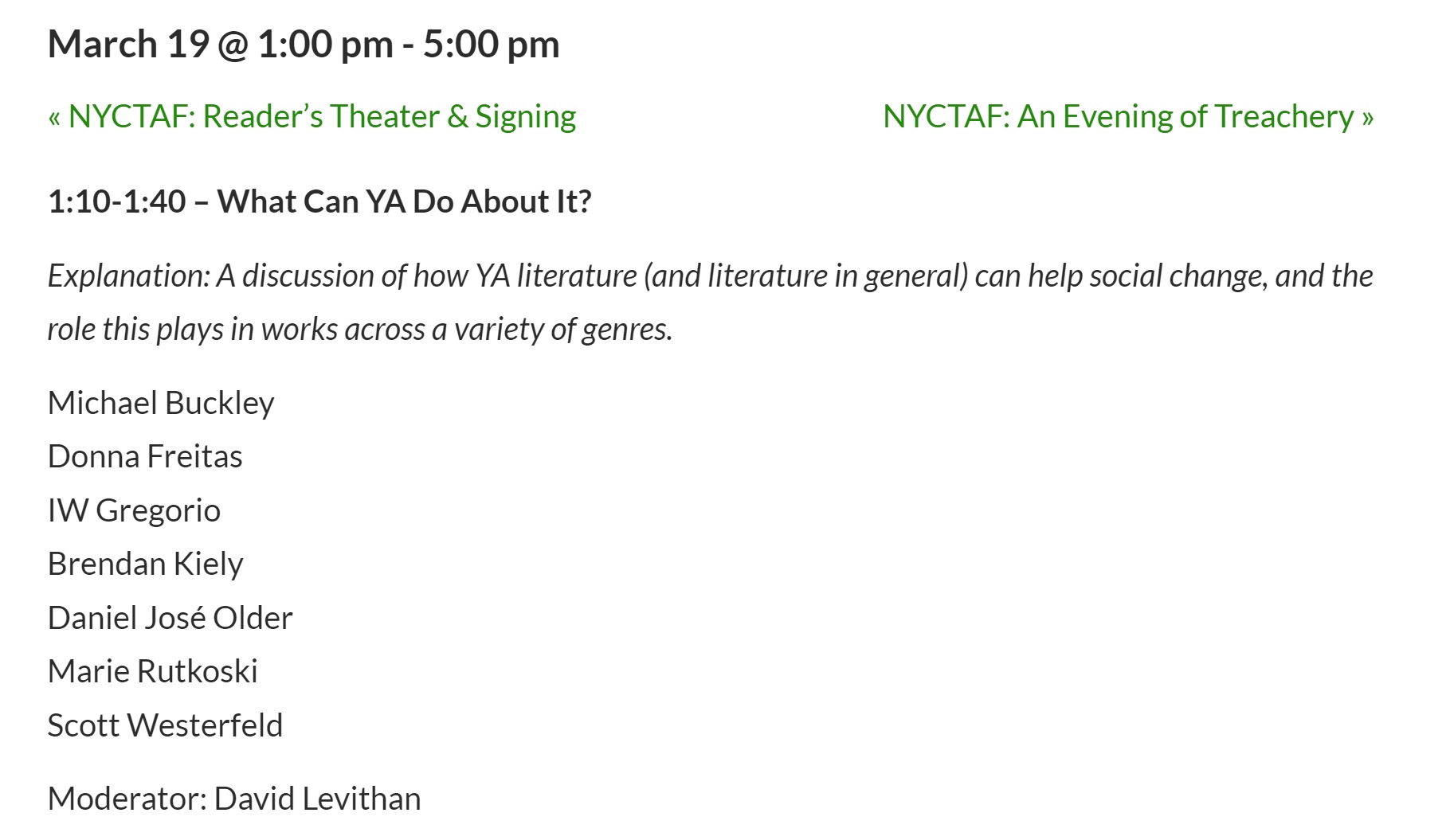 1 thought on “Good things come: The Lammys, SE-YA & #NYCTAF